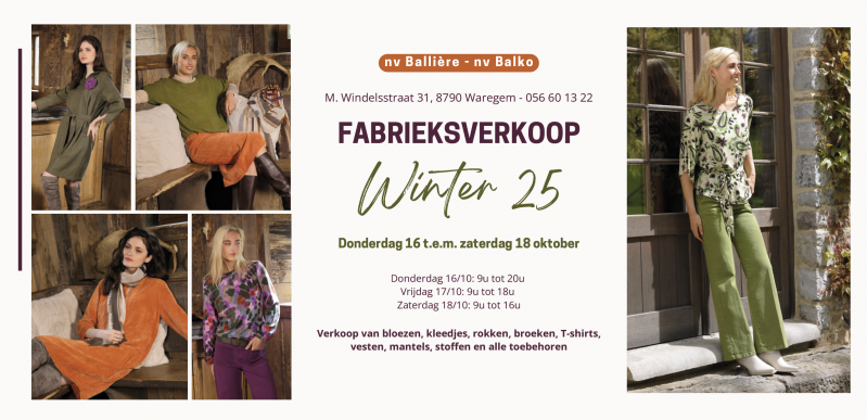 De fabrieksverkoop voor winter 2025 gaat door op 16, 17 en 18 oktober.